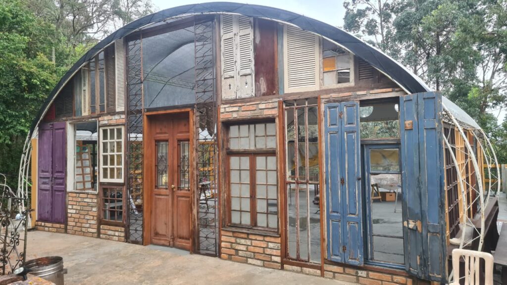 Essa instalação é um sonho antigo do Edu Capello, que junto com Mirian Martins, são os guardiões do ARCA Ateliê Rural. Edu, guardou as portas e janelas da casa que foi de sua família em São Paulo, e desejava rever essas memórias presentes na sua vida, no dia a dia, neste novo lugar que ele escolheu para viver.